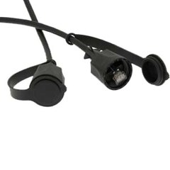 Both RJ45 plugs have water tight caps that connect to panel mount water tight RJ45 jacks.